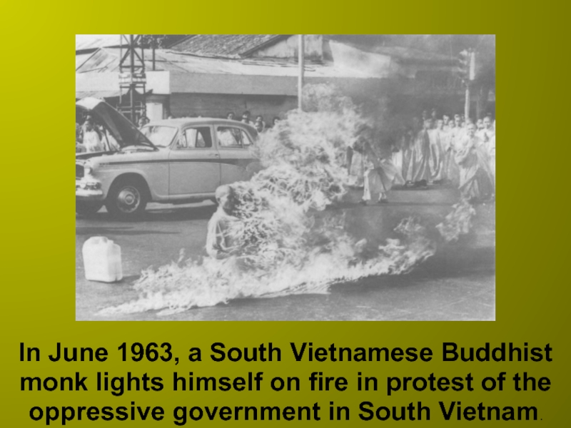 Слайд 5In June 1963, a South Vietnamese Buddhist monk lights himself