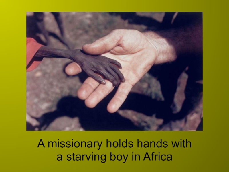 Слайд 10A missionary holds hands with