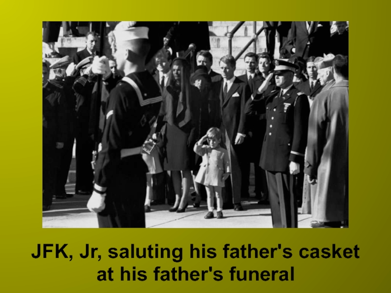 Слайд 9JFK, Jr, saluting his father's casket