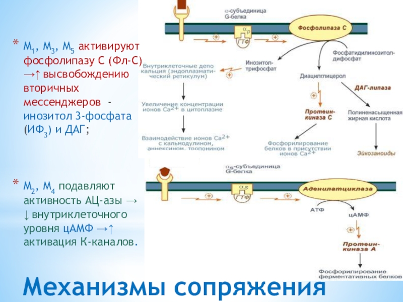 M1, M3, M5 активируют фосфолипазу С (Фл-C) →↑ высвобождению