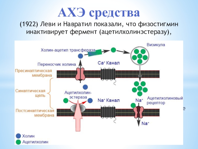 (1922) Леви и Навратил показали, что физостигмин инактивирует фермент (ацетилхолинэстеразу),