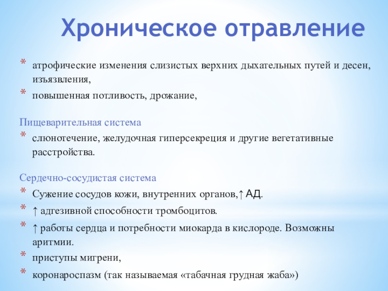 4) гиперсекреция всех желез (слюнотечение, отек легких – «булькание», хрипы, чувство стеснения за грудиной, одышка);