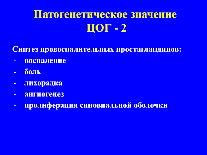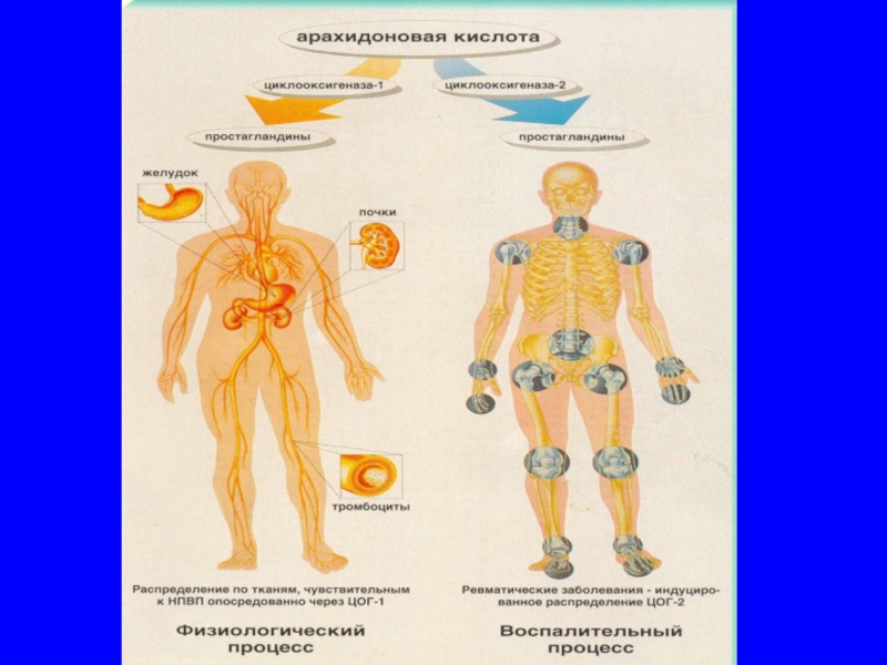 физиологических (ЦОГ – 1) и провоспалительных (ЦОГ – 2) простагландинов;