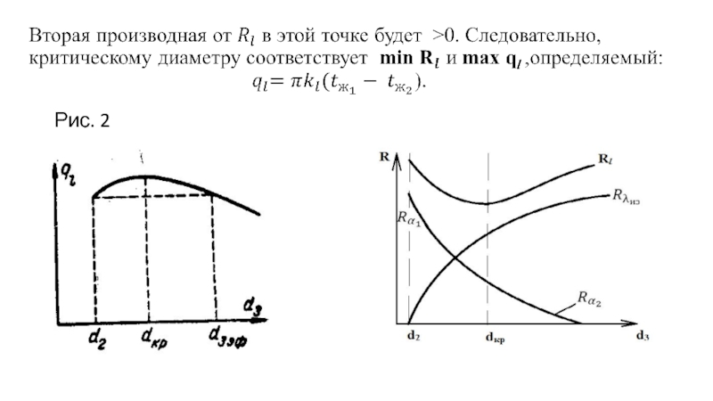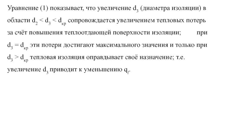 счёт повышения теплоотдающей поверхности изоляции; при d3 = dкр эти потери достигают максимального значения и только при d3 > dкр тепловая изоляция оправдывает своё назначение; т.е. увеличение d3 приводит к уменьшению ql.