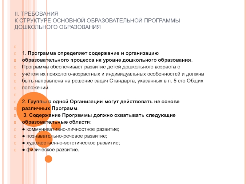 II. ТРЕБОВАНИЯ К СТРУКТУРЕ ОСНОВНОЙ ОБРАЗОВАТЕЛЬНОЙ