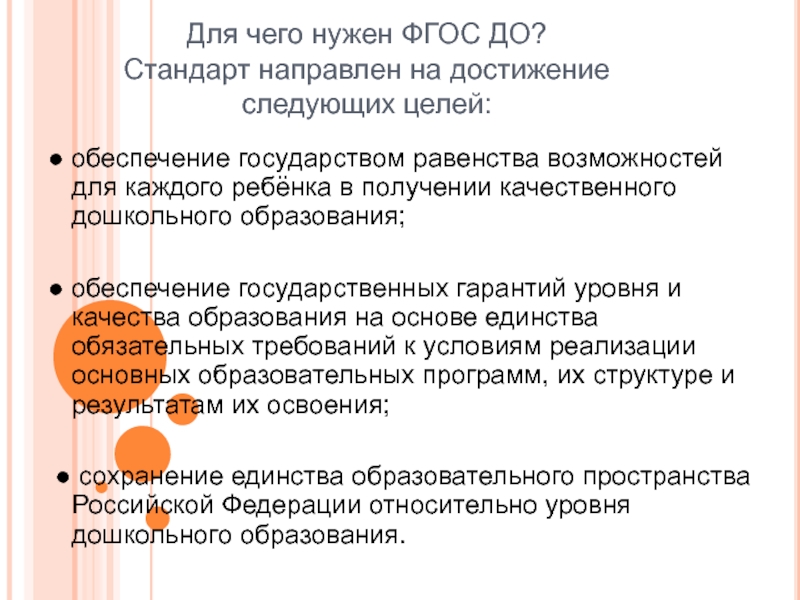 Слайд 9Для чего нужен ФГОС ДО?