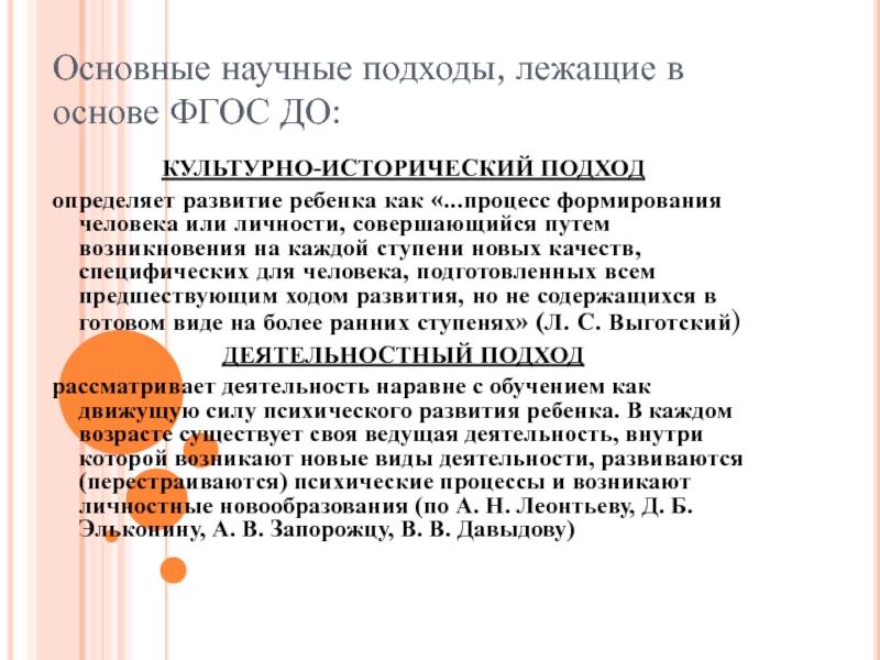 Слайд 5Основные научные подходы, лежащие в основе ФГОС ДО: