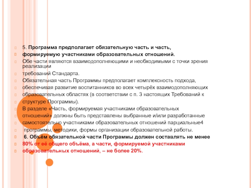 числе требования к соотношению частей основной образовательной программы и их объему, а также к соотношению обязательной части основной образовательной программы и части, формируемой участниками образовательного процесса;
