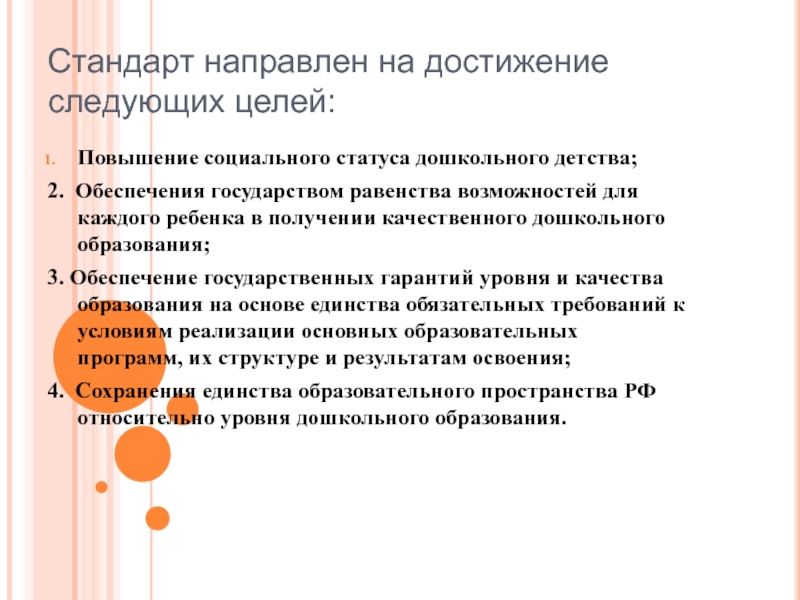 4. Сохранения единства образовательного пространства РФ относительно уровня дошкольного образования.