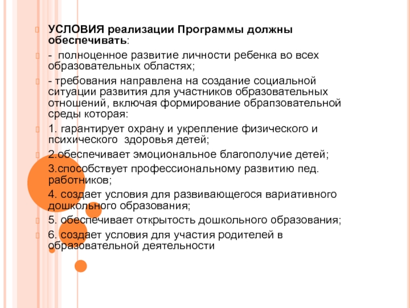 к условиям реализации Программы включают требования к