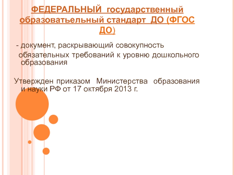 Слайд 2ФЕДЕРАЛЬНЫЙ государственный образоватьельный стандарт ДО (ФГОС ДО)