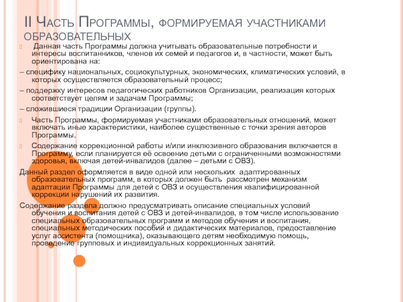 Слайд 23II Часть Программы, формируемая участниками образовательных