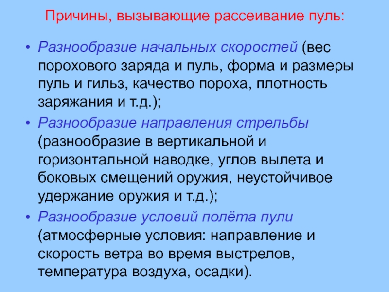 Слайд 18Причины, вызывающие рассеивание пуль:
