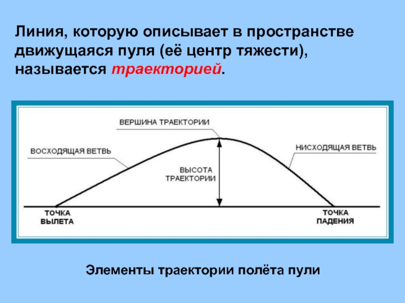 Слайд 12Линия, которую описывает в пространстве движущаяся пуля (её центр тяжести),