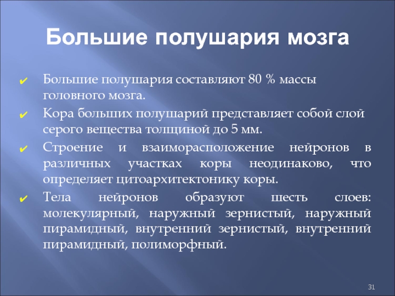 Слайд 31Большие полушария мозга