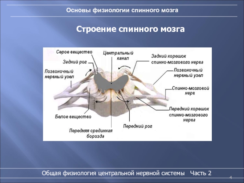 Слайд 4Основы физиологии спинного мозга