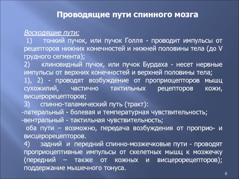 Слайд 6Проводящие пути спинного мозга