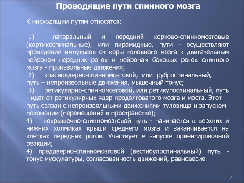 Слайд 7Проводящие пути спинного мозга