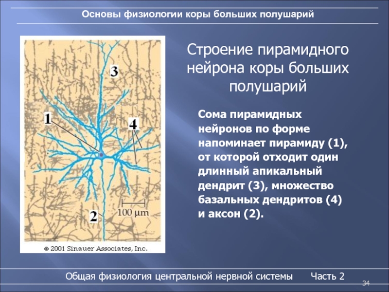 Строение пирамидного нейрона коры больших полушарий
