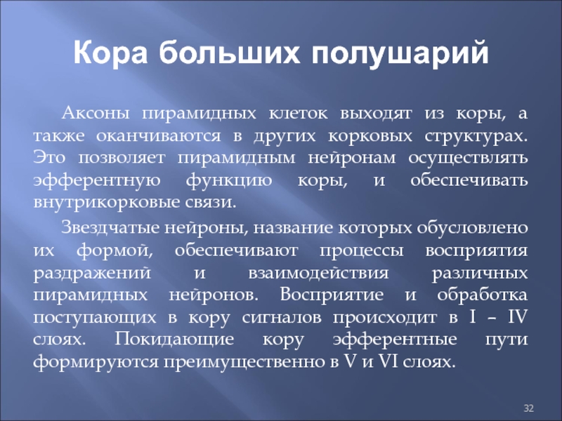Слайд 32Кора больших полушарий