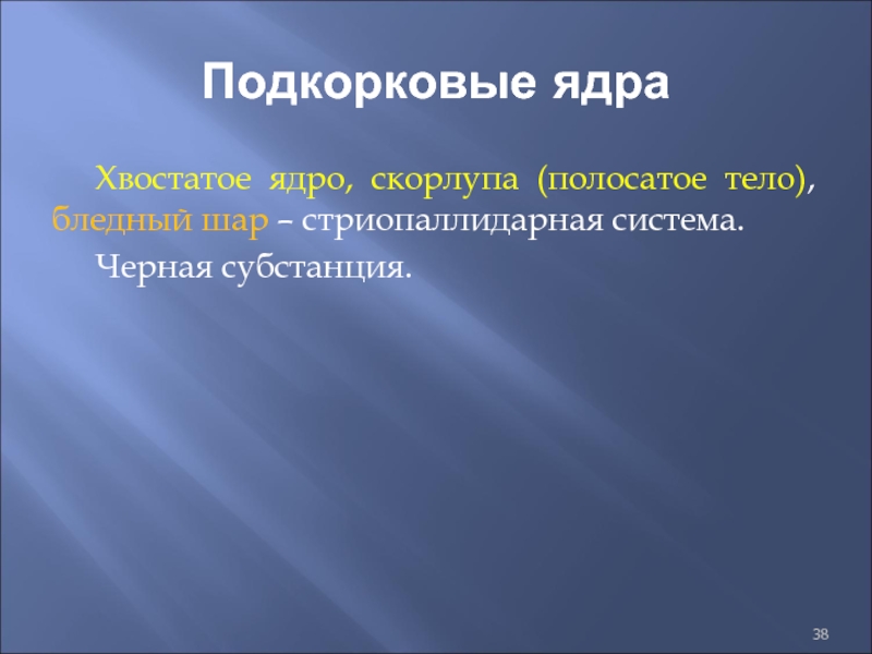 Слайд 38Подкорковые ядра