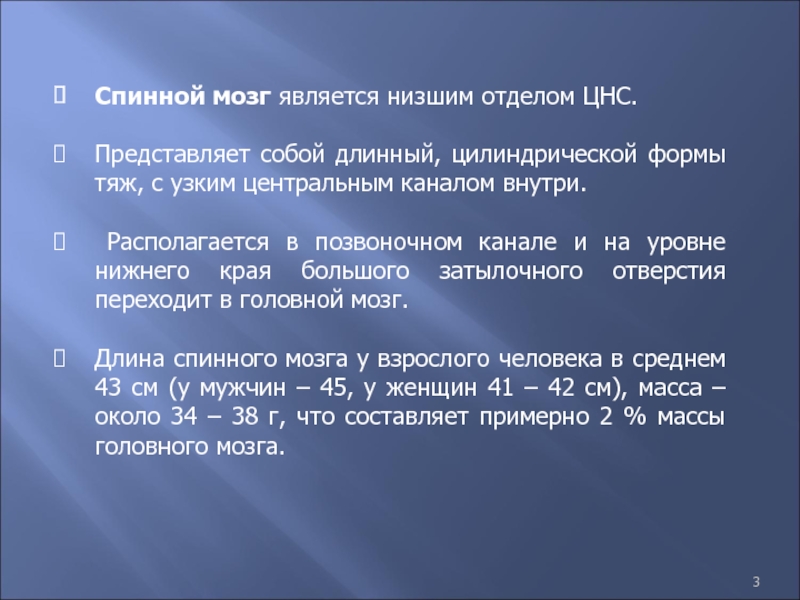Слайд 3Спинной мозг является низшим отделом ЦНС.