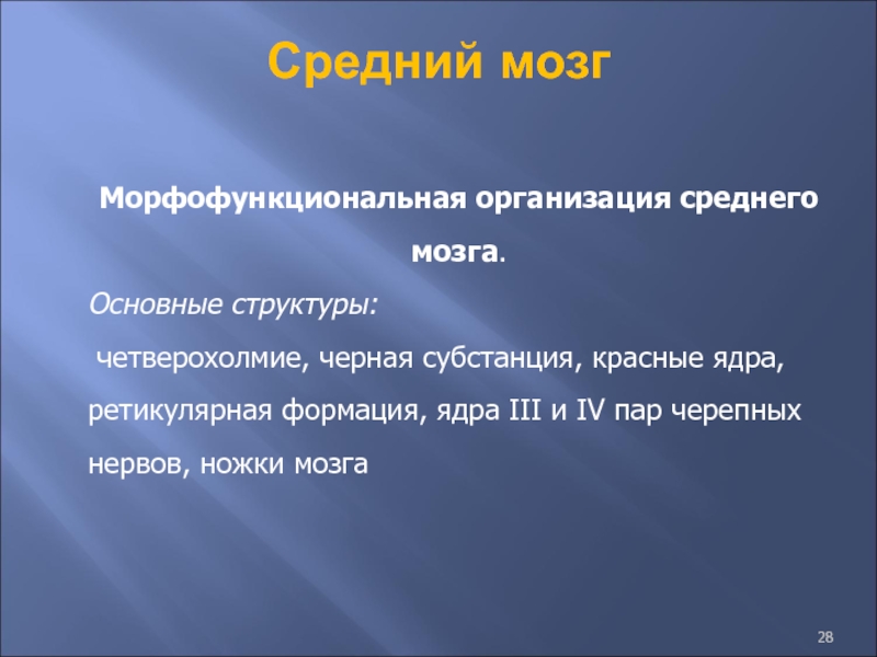 Слайд 28Средний мозг