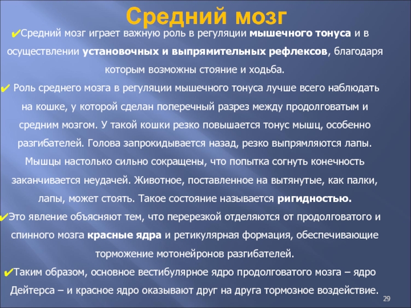 Средний мозг играет важную роль в регуляции мышечного тонуса