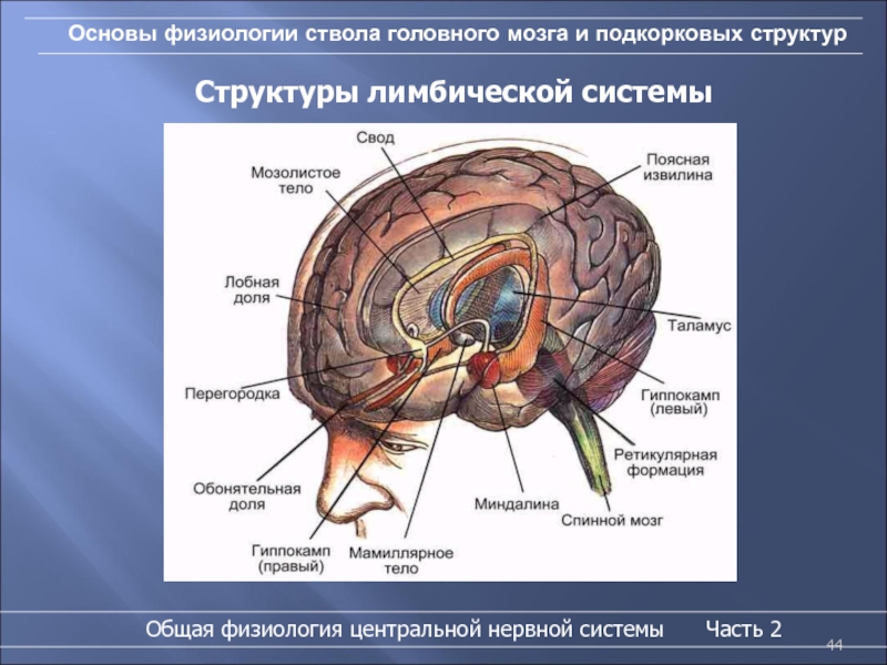 Слайд 44Основы физиологии ствола головного мозга и подкорковых структур