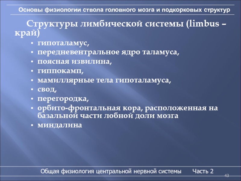 Слайд 43Основы физиологии ствола головного мозга и подкорковых структур
