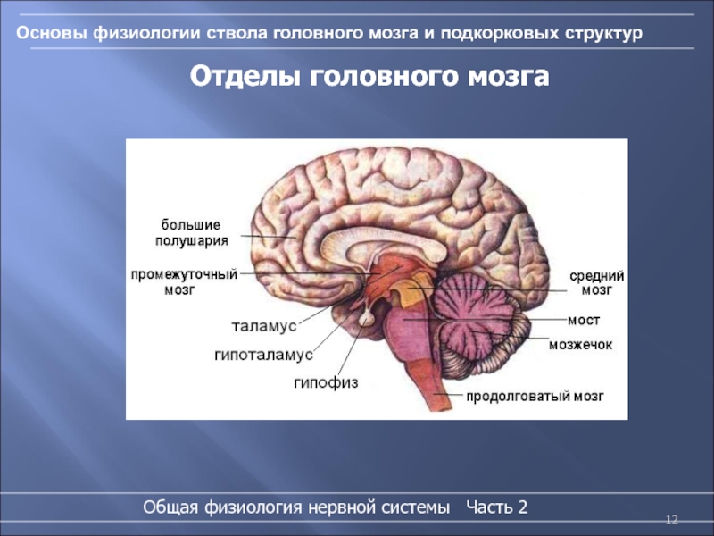 Слайд 12Основы физиологии ствола головного мозга и подкорковых структур