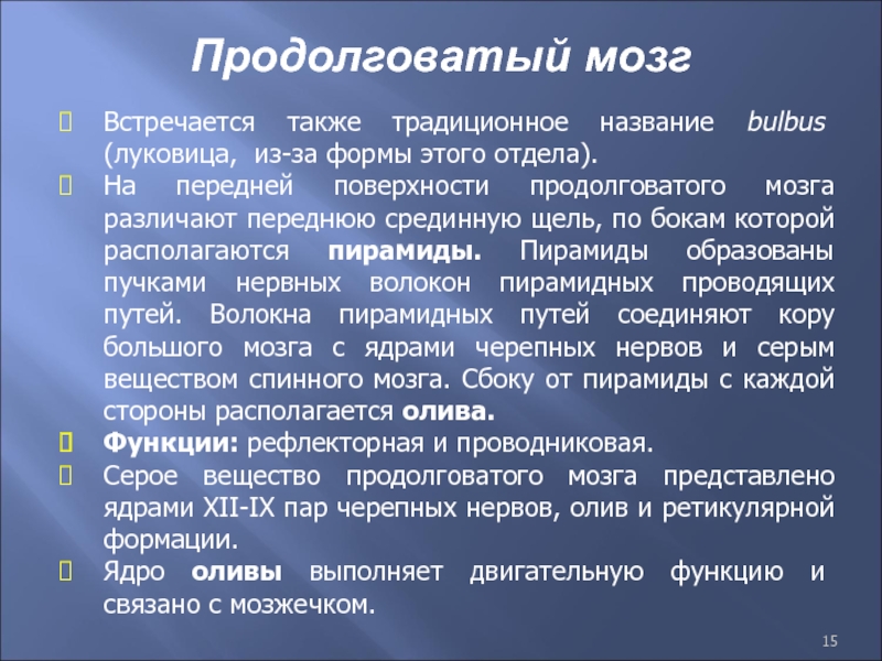 Слайд 15Продолговатый мозг