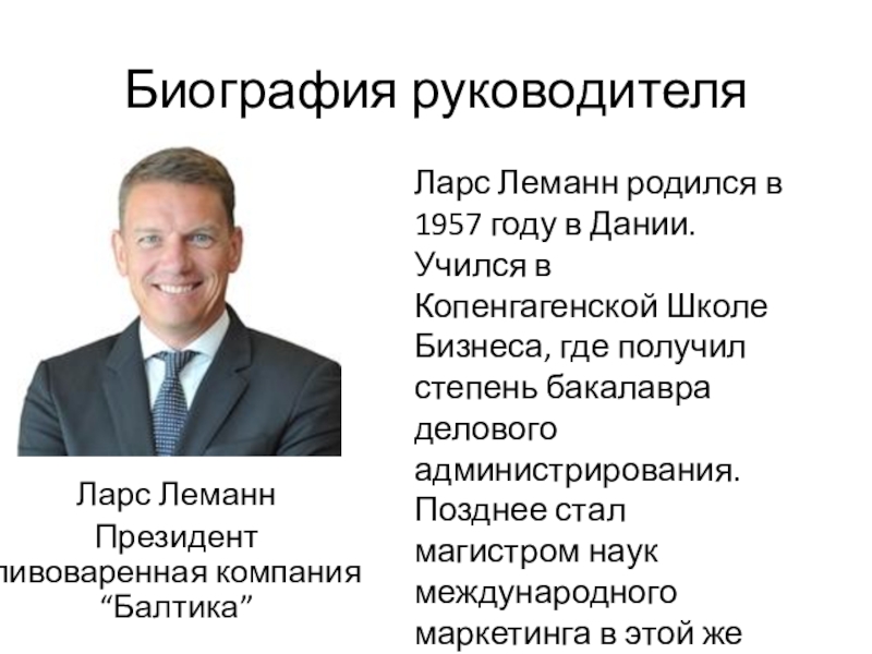 Слайд 13Биография руководителя