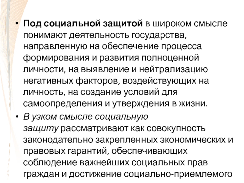 Как представляется, наиболее важной проблемой является именно определение того, кто и почему должен пользоваться поддержкой социума или, иначе говоря, какими критериями следует руководствоваться законодателю при разработке системы социального обеспечения.