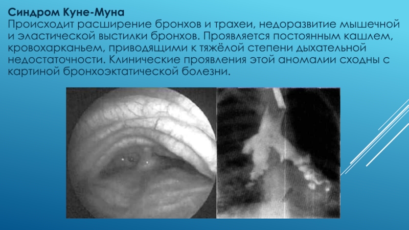 степени дыхательной недостаточности. Клинические проявления этой аномалии сходны с картиной бронхоэктатической болезни.