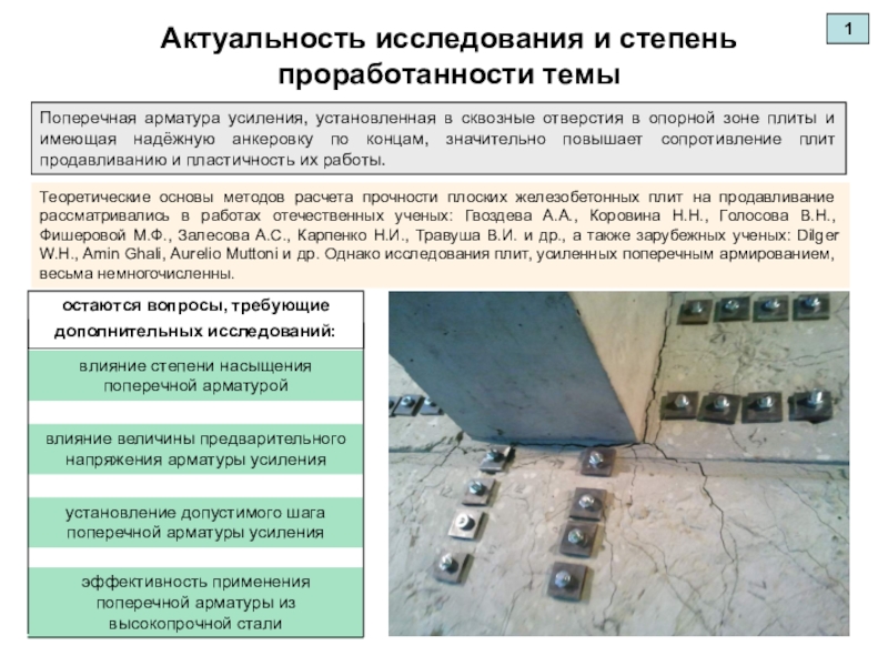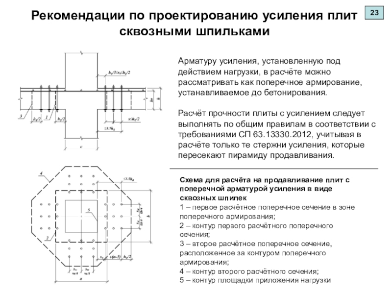 Сопротивление продавливанию плоских железобетонных плит, усиленных поперечной арматурой