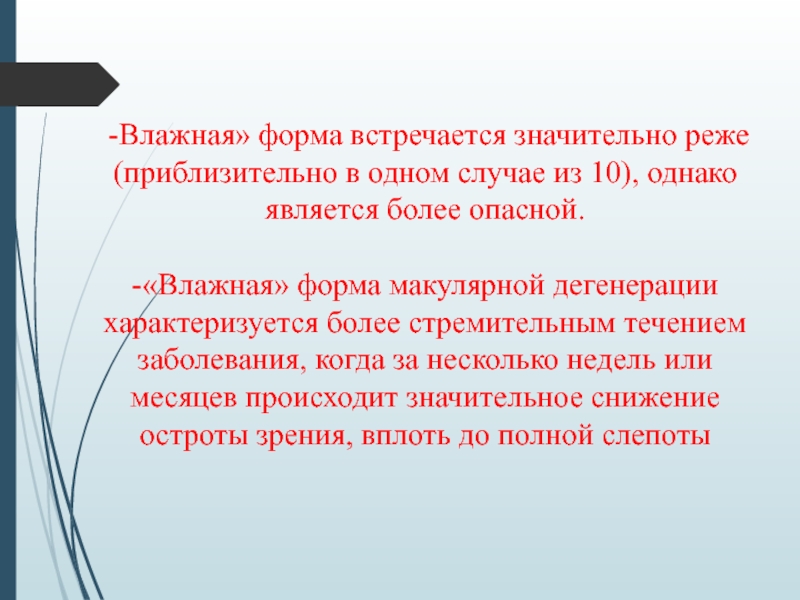 Слайд 13 -Влажная» форма встречается значительно реже (приблизительно в одном случае из