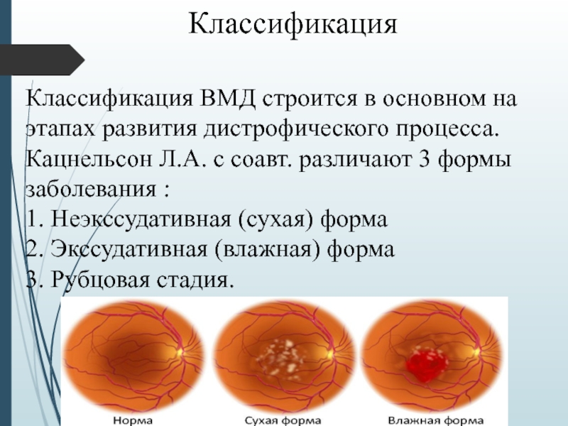 Классификация ВМД строится в основном на этапах развития дистрофического процесса.