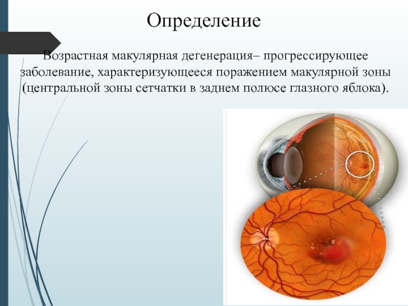 Возрастная макулярная дегенерация– прогрессирующее заболевание, характеризующееся поражением макулярной зоны (центральной