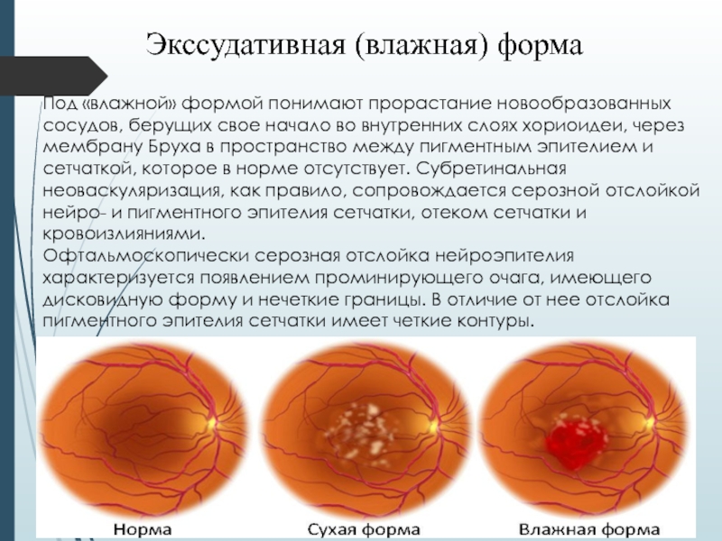 Под «влажной» формой понимают прорастание новообразованных сосудов, берущих