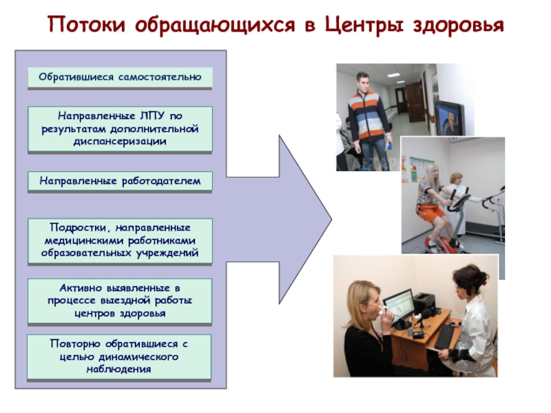 ► Посещение занятий в лечебно-физкультурных кабинетах и врачебно-физкультурных диспансерах по программам, разработанным в центре здоровья