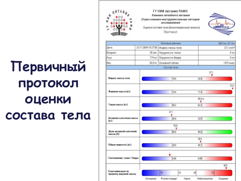 Определение состава тела (процентное соотношение воды, мышечной и жировой ткани)