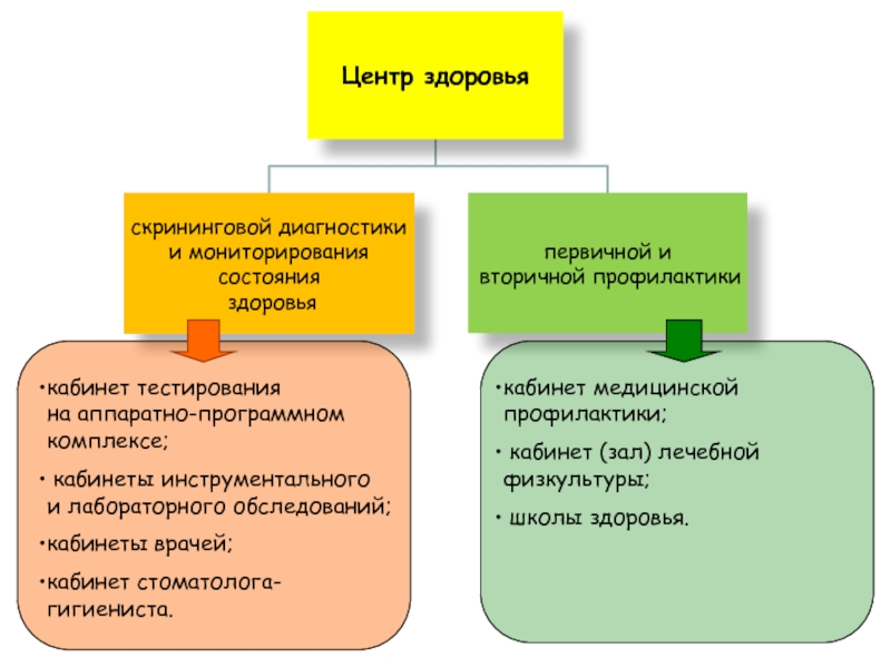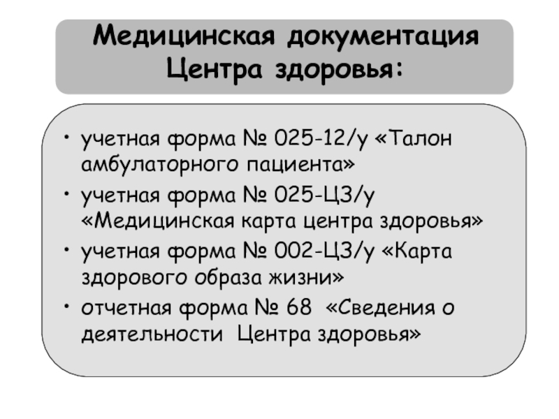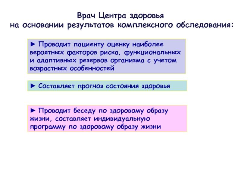 ► Динамическое наблюдение в центре здоровья с проведением повторных исследований в соответствии с выявленными факторами риска или наблюдение в кабинетах медицинской профилактики