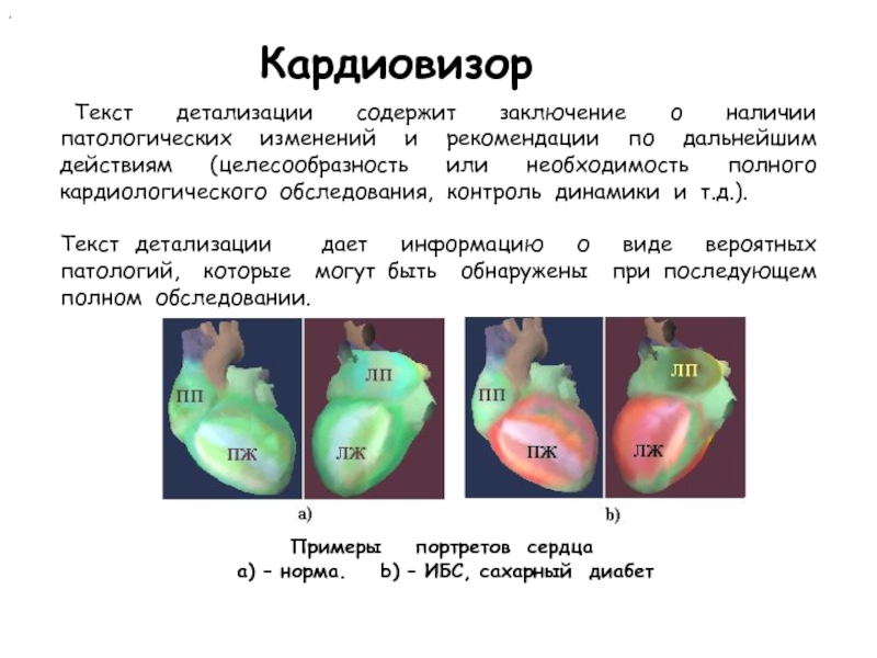Текст детализации дает информацию о виде вероятных патологий, которые могут быть обнаружены при последующем полном обследовании.