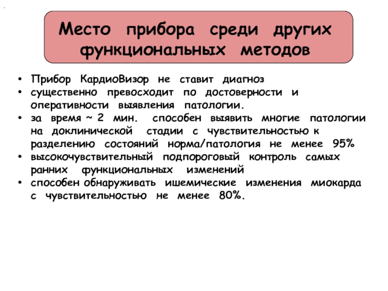 ~ 2 мин. способен выявить многие патологии на доклинической стадии с чувствительностью к разделению состояний норма/патология не менее 95%