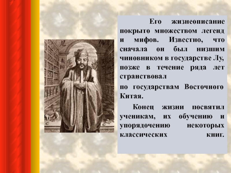 Слайд 4 Его жизнеописание покрыто множеством легенд и мифов. Известно,