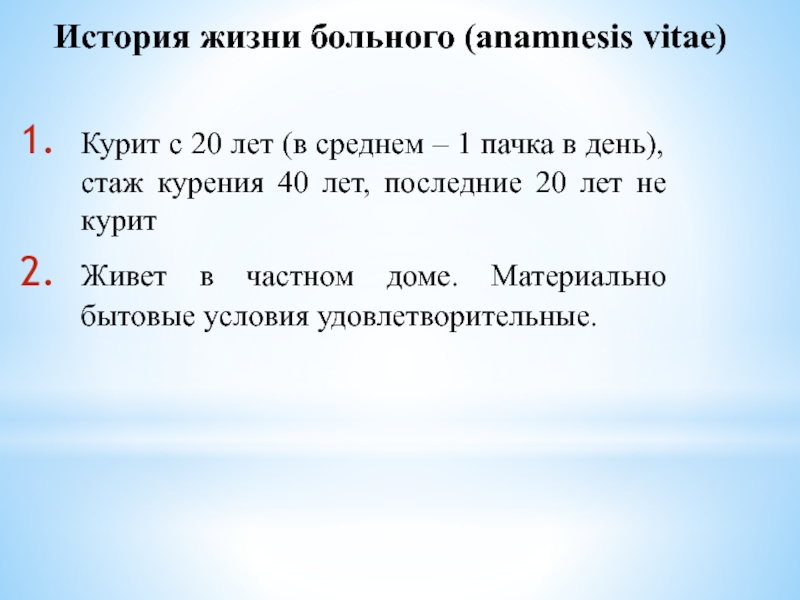 Слайд 5История жизни больного (anamnesis vitae)