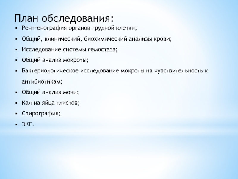 Слайд 8План обследования: