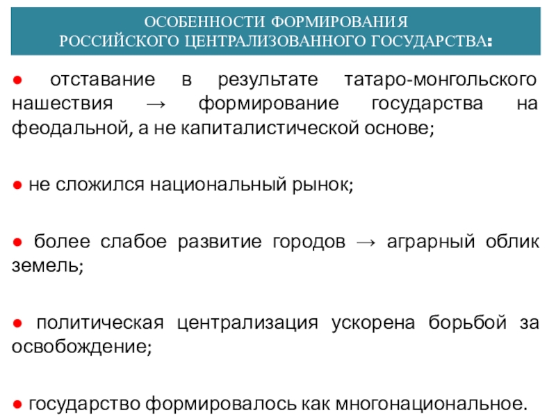 ЦЕНТРАЛИЗОВАННОГО ГОСУДАРСТВА