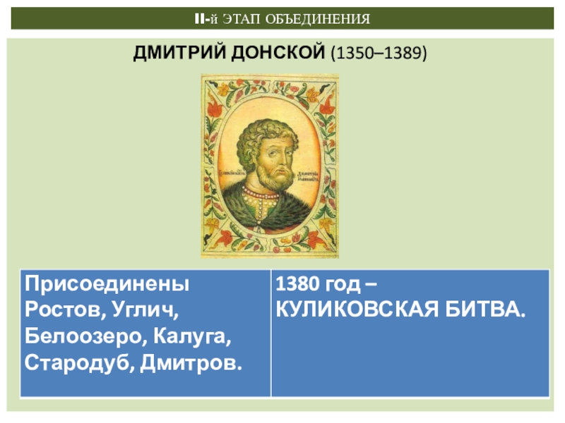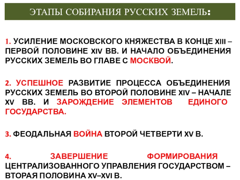 ПРЕДПОСЫЛКИ И ОСНОВНЫЕ ЭТАПЫ ОБЪЕДИНЕНИЯ РУССКИХ ЗЕМЕЛЬ